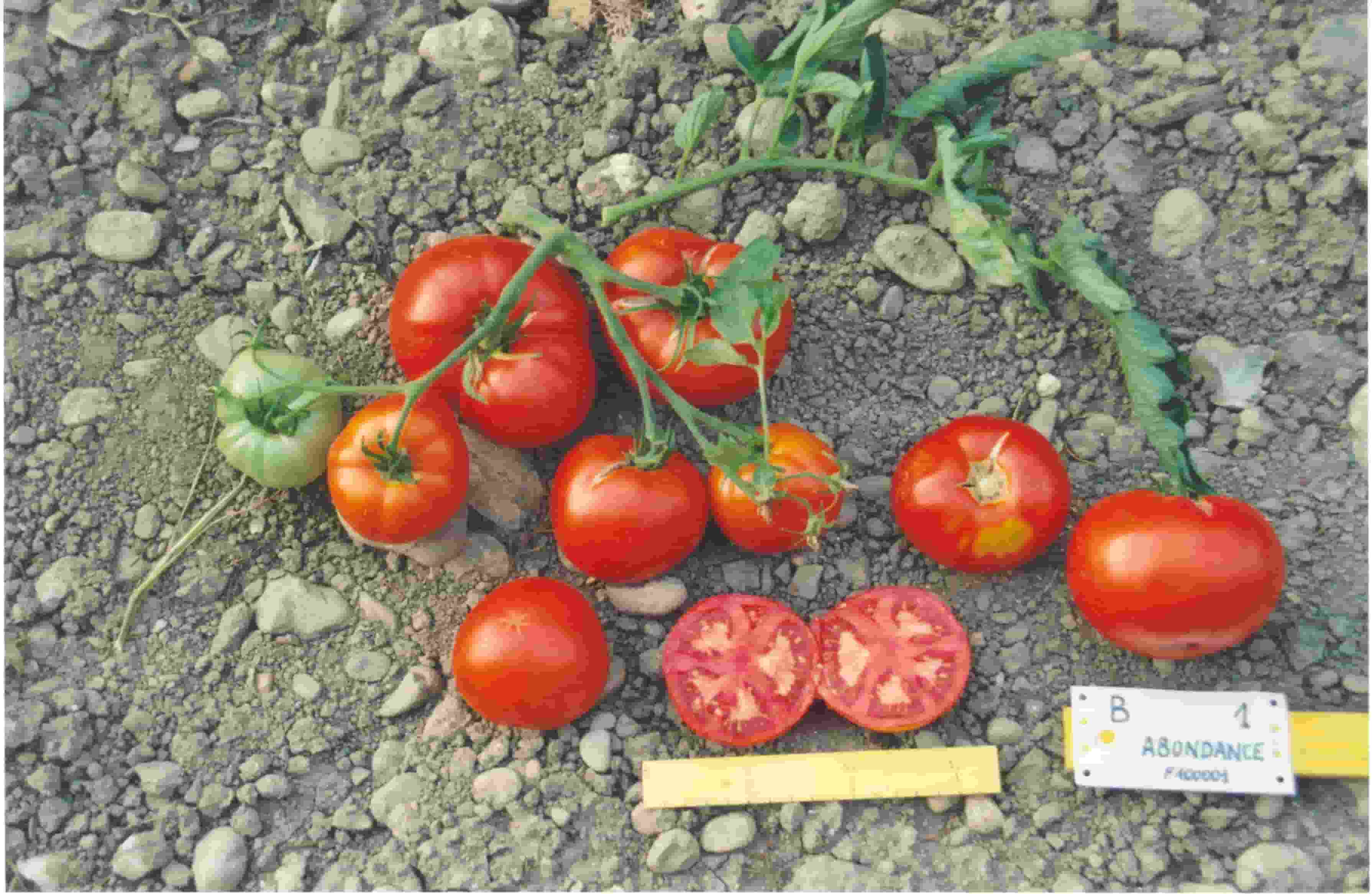 commentaire description/Observation/commentaire 2001: premiers bouquets fortement chargés 2005 :feuillage couvrant et sain en fin de culture,bonne tenue des fruits 2019: excellente charge et nouaison sur les 2 premiers bouquets, plus faible ensuite. Feuillage jaunissant au bas des plantes puis entièrement décoloré en fin de culture. Mauvaise tenue des fruits à surmaturité.