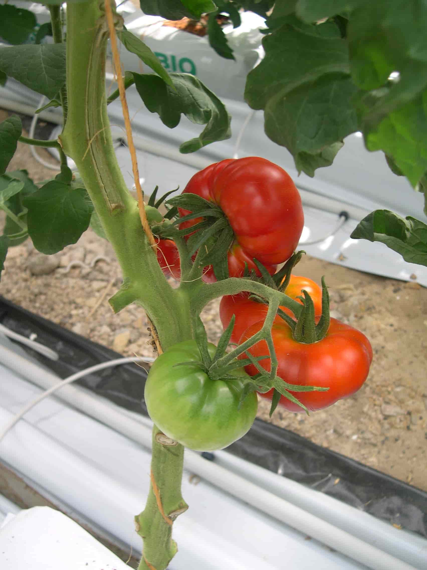 INRA, 1998: collet jaune fortement marqué, fruits de type marmande. Intérieur pas très bien coloré.