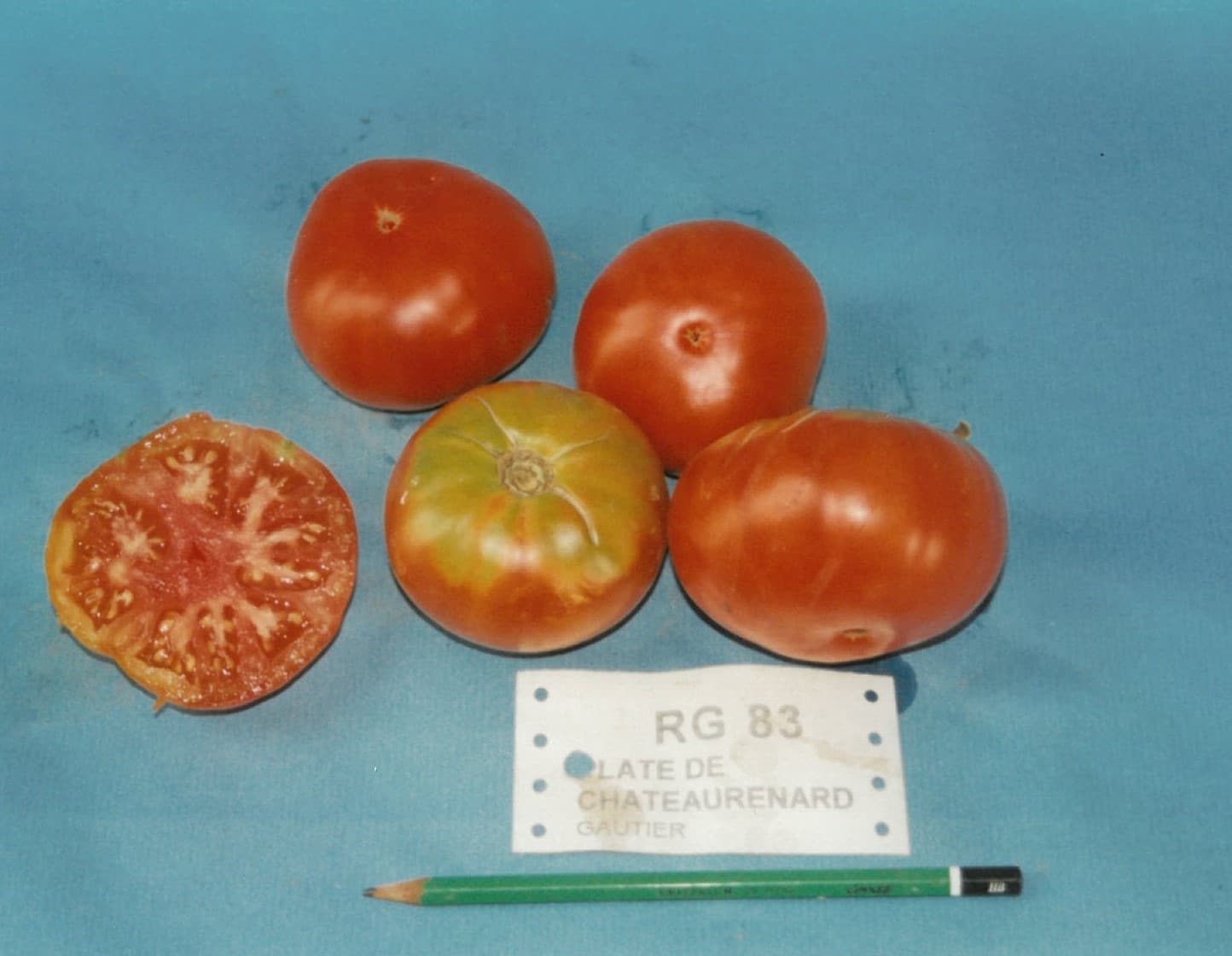 Commentaire fruit/Observation/Commentaire fruit INRA, 1993: loges disposées régulièrement autour d'un pilier central, collet jaune ou vert + ou - marqué suivant les fruits, intérieur assez bien coloré. 2005: idem 2019: jolis fruits de calibre régulier, attache pédonculaire déprimée, quelques fentes radiales parfois: intérieur multiloge, pas charnu, loges disposées autour d'un centre charnu rouge, beaucoup de graines Poids moyen (1998): 173 g, (2005 ): 183 g, (2019): 215 g Goût (2005) : assez bon, peu sucré, texture agréable, fondante. (2019): équilibré, texture fondante.